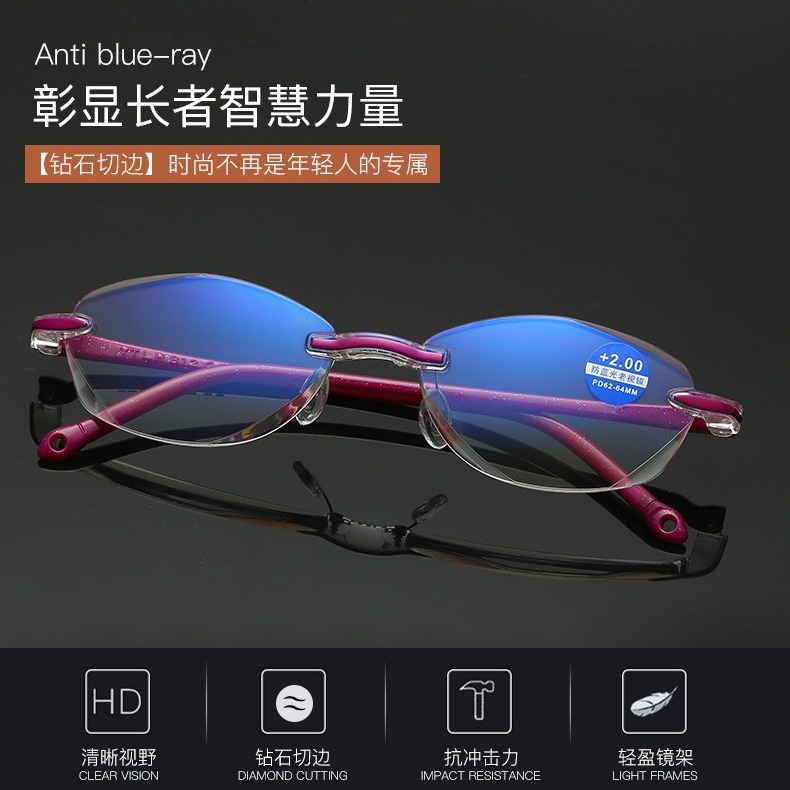 | nameOriginal | Full new spot frameless Diamond trimming reading glasses fashion integrated women's anti-blue light Old Man mirror factory sales |
