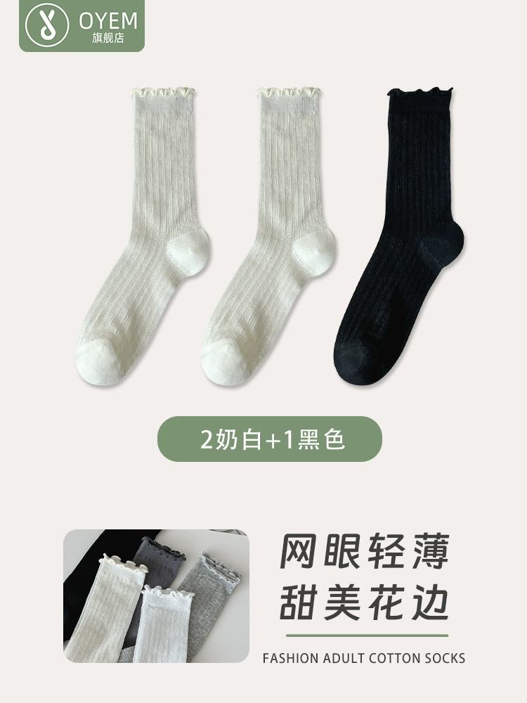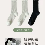 Fungus edge socks for women in summer thin mid-calf socks breathable mesh pure cotton pile socks miu style lolita socks