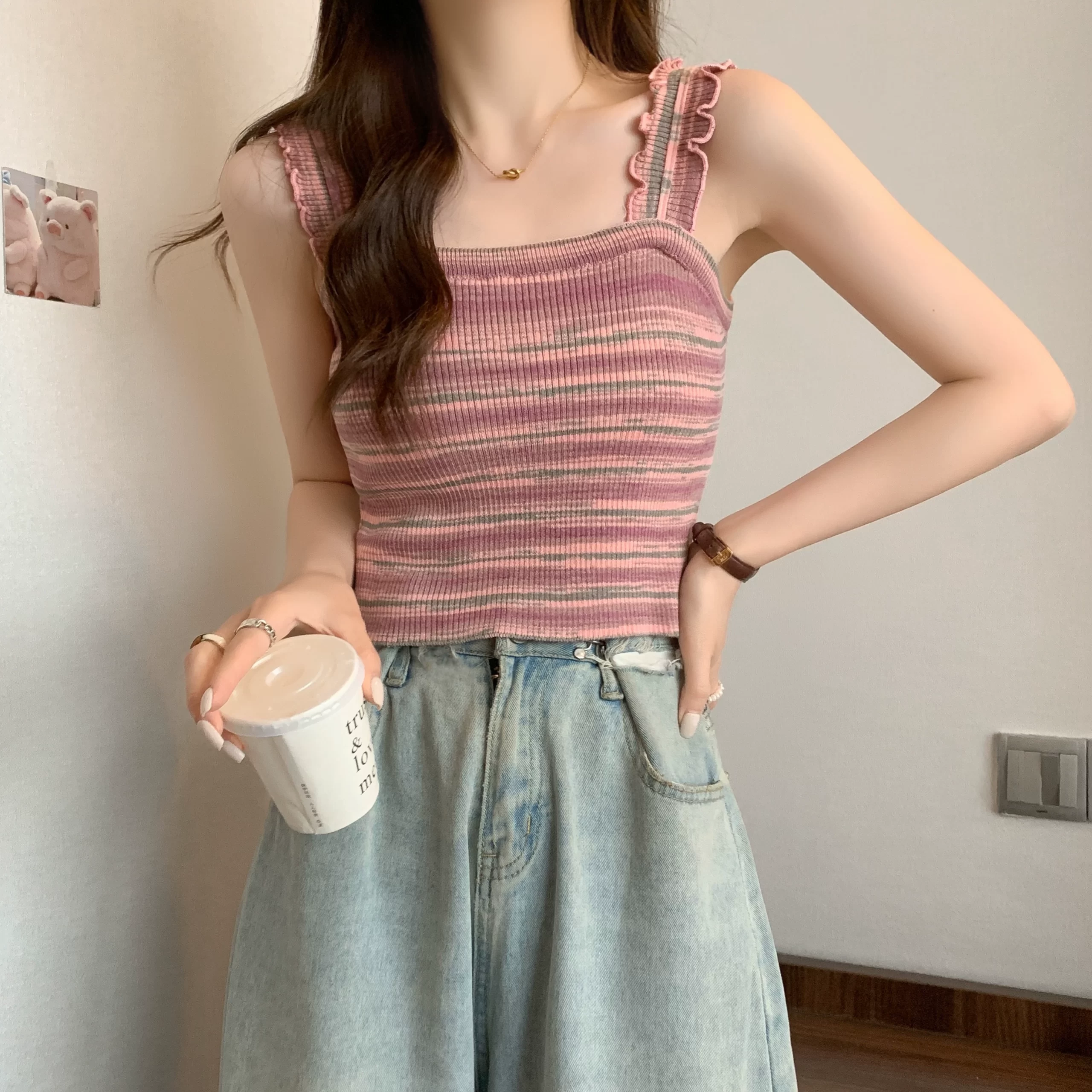 | nameOriginal | Fungus edge striped thin section fat mm slim fit camisole |