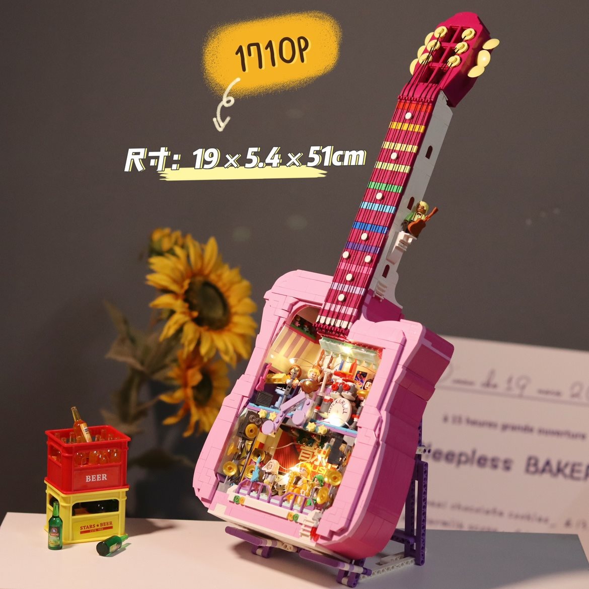 FUNSS Guitar Series Small Particle Assembled Building Blocks Trendy Play Ornaments Boys and Girls Tanabata Valentine's Day Gift Toys