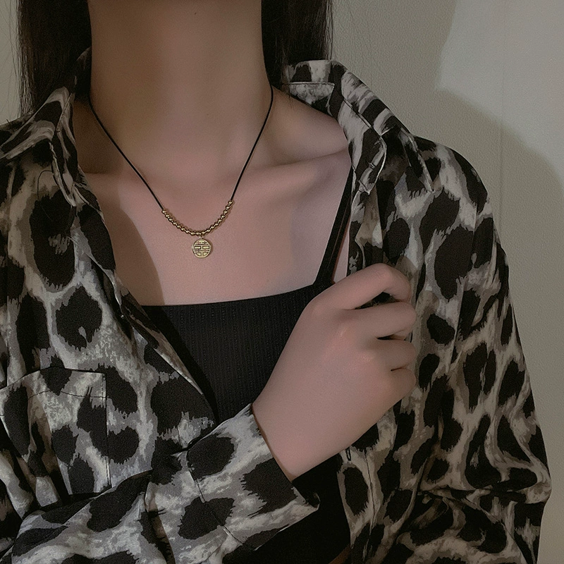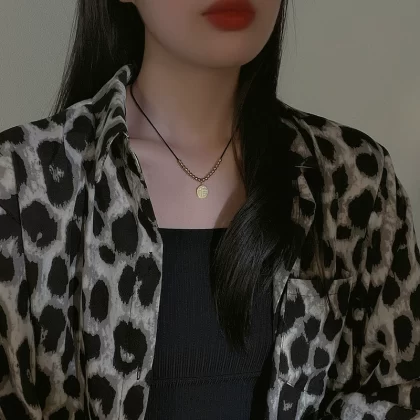 Fuxi double-sided necklace women's titanium steel non-fading black leather rope wax rope clavicle chain ethnic style 2021 new trend