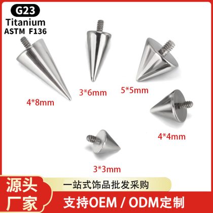 G23 titanium alloy external tooth wire tip cone F136 lip nail eyebrow nail external thread devil nail puncture jewelry accessories