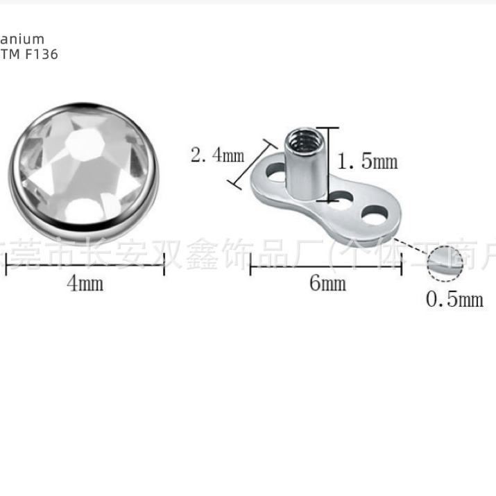 | nameOriginal | G23 titanium alloy skin implant nail buried nail package inlaid imported Czech diamond buried bone nail with base puncture jewelry |