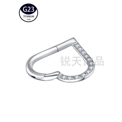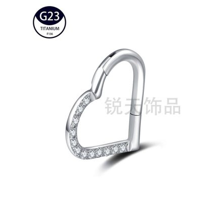 | nameOriginal | G23 titanium heart single zircon nose ring earrings piercing female jewelry ear bone lip ring F136 titanium alloy tongue nail jewelry |