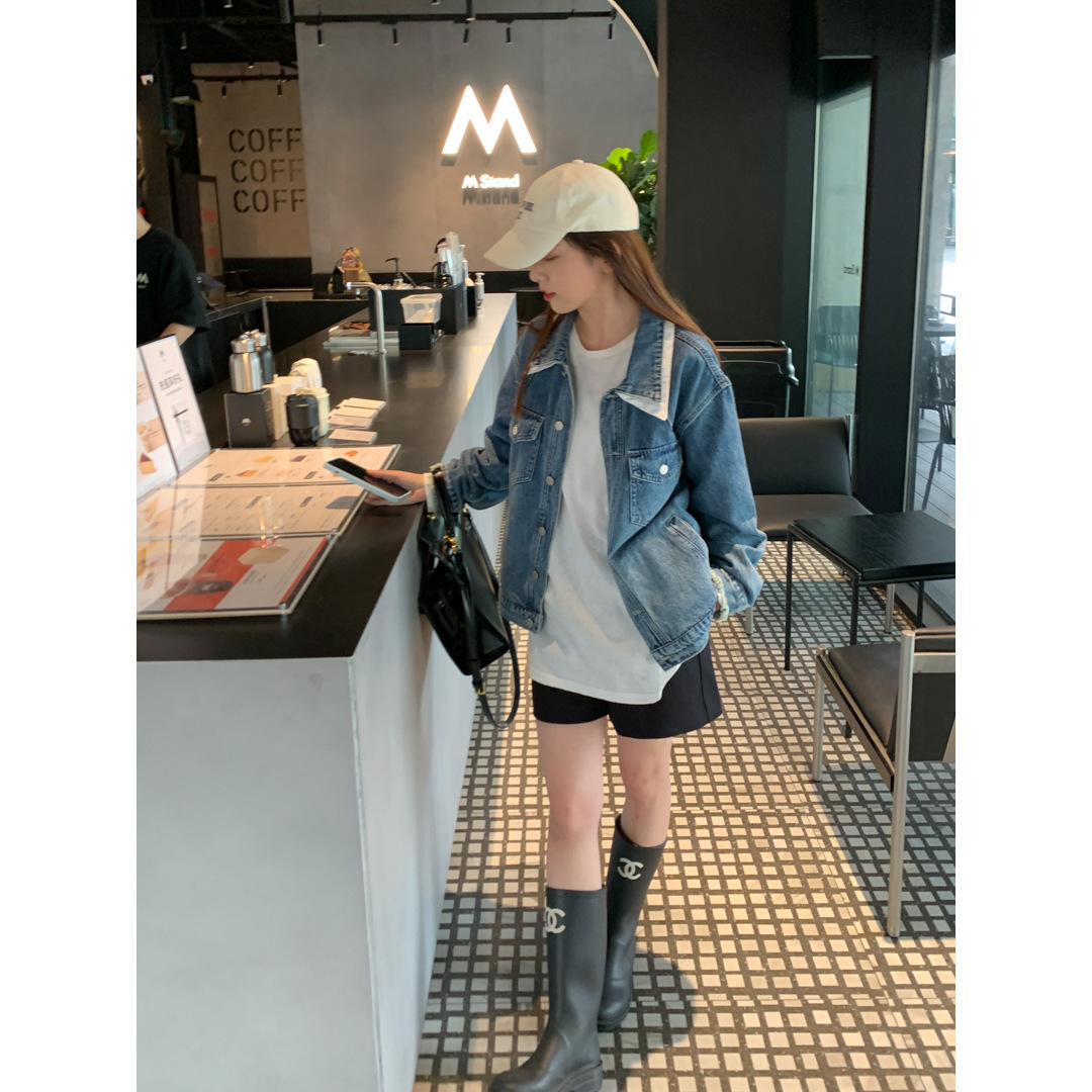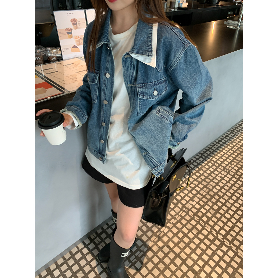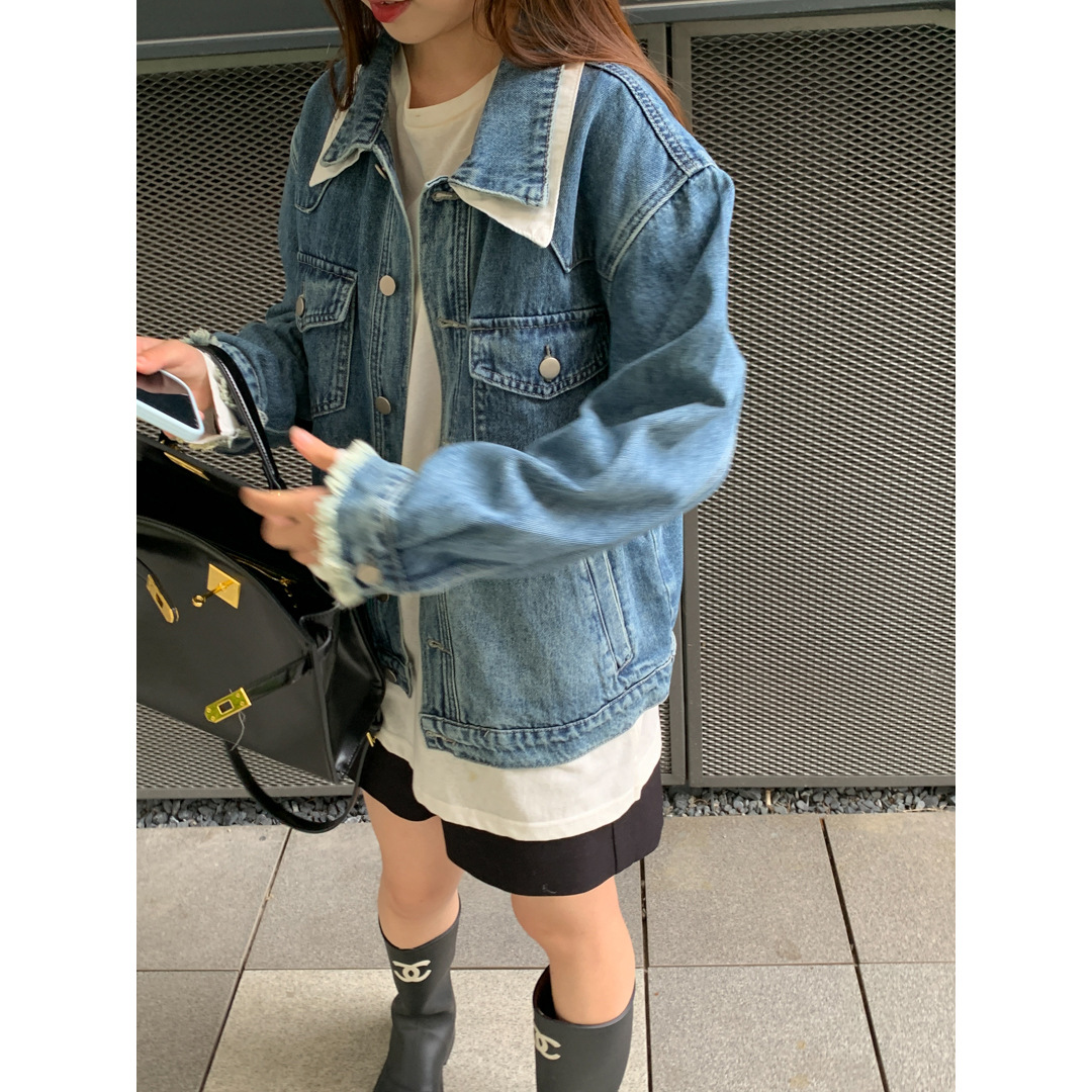 | nameOriginal | GAGD contrast color double-layer collar Denim coat women's design fashionable fake two-piece loose all-match coat jacket women |
