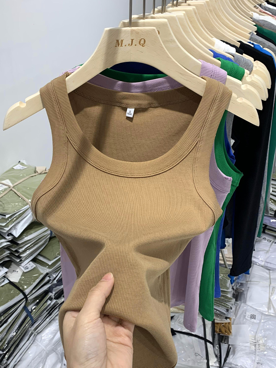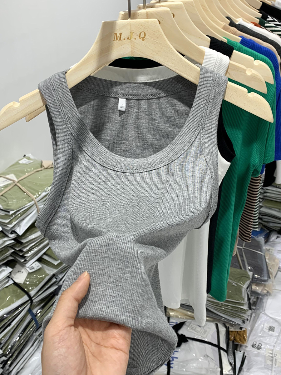 | nameOriginal | Gan Yousi Threaded Camisole Women's Inner Base Shirt Women's Color Sports Spring and Summer Short-sleeved Top Green |