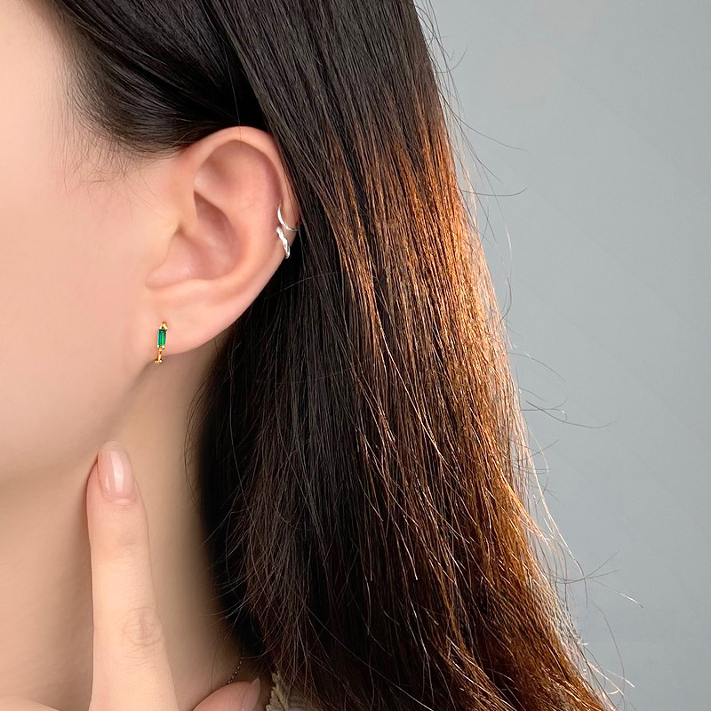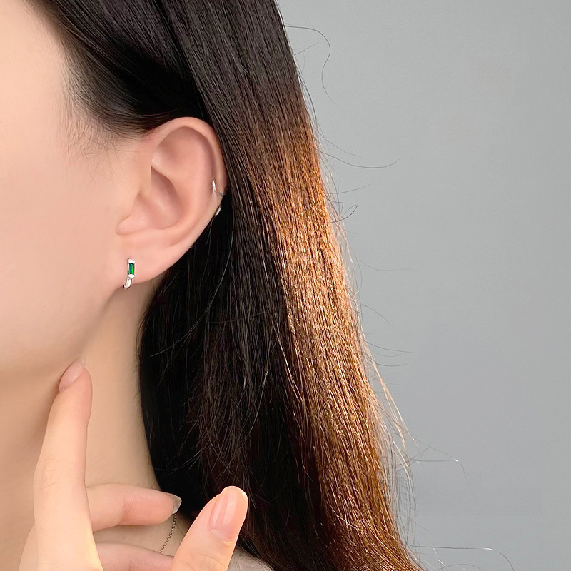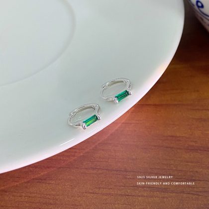 أقراط من Ganjia S925 مصنوعة من الفضة المربعة باللون الأخضر والزركون للسيدات أقراط بتصميم بسيط ومزاجية على الإنترنت للمشاهير على الطراز البارد