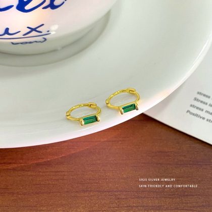 Ganjia S925 silver square green zircon earrings women's simple design temperament earrings Internet celebrity cold style earrings