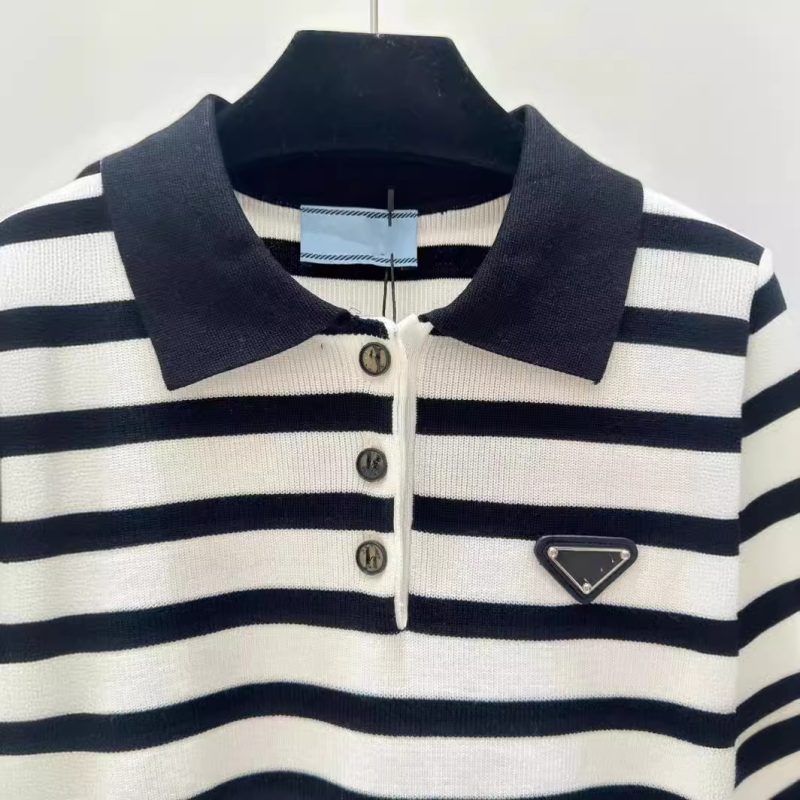 | nameOriginal | Gao Ding Simple Academy Style Triangle Short-sleeved T-shirt Women's 24 Spring and Summer New Striped Contrast Color Thin Knitted Shirt |