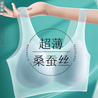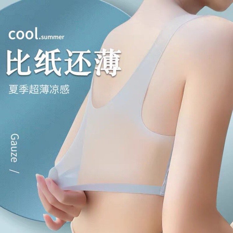 Ge Qianya Summer Ultra-thin Ice Silk Beautiful Back Bra Traceless Vest plus size Underwear Women's Gather Big Chest Small Bra