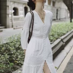 | nameOriginal | Gentle Heavy Industry Ethnic Style White V-Neck Dress |