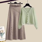 Gentle Korean style suit women's Tea Series wear a set of early winter green sweater coat skirt two-piece set