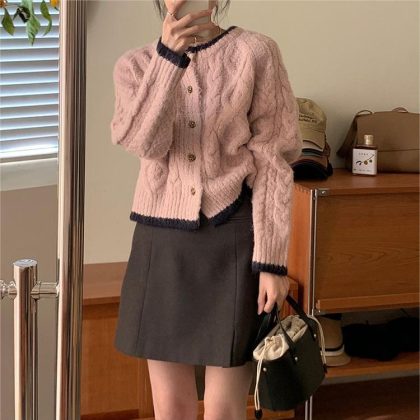 | nameOriginal | Gentle style contrast color sweater coat for women autumn and winter 2023 New elegant soft glutinous twist knitted cardigan top for women |