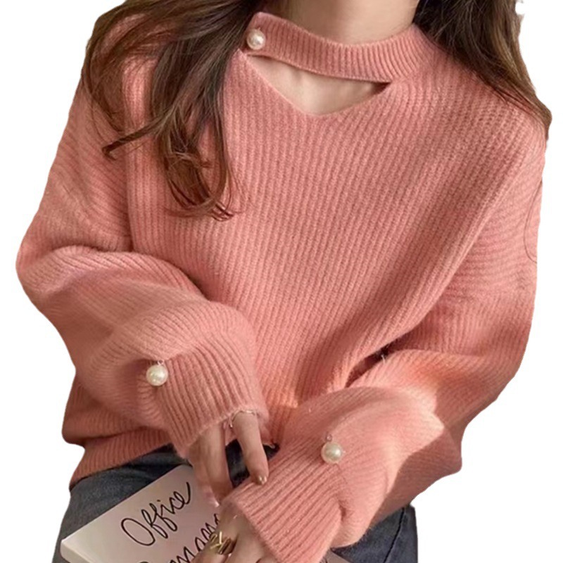 | nameOriginal | Gentle style Pearl halter soft glutinous sweater for women autumn and winter 2024 New lazy thickened design knitted bottoming shirt |