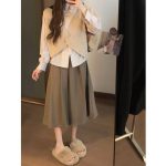 | nameOriginal | Gentle style twisted knitted vest + striped shirt + skirt women's autumn 2023 new three-piece suit |