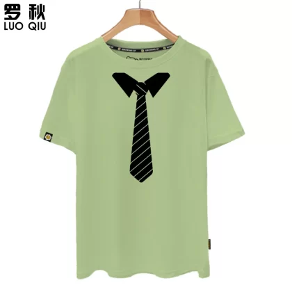 Gentleman Printed Graphic Shirt Half Sleeve Fake Tie