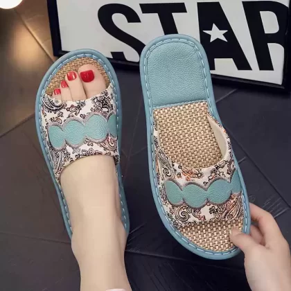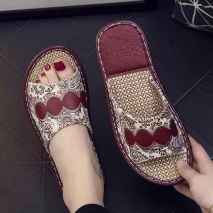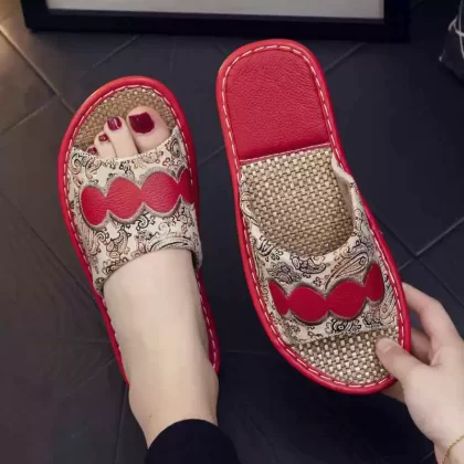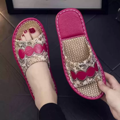 | nameOriginal | Genuine leather and linen indoor anti-slip soft sole all-season slippers |