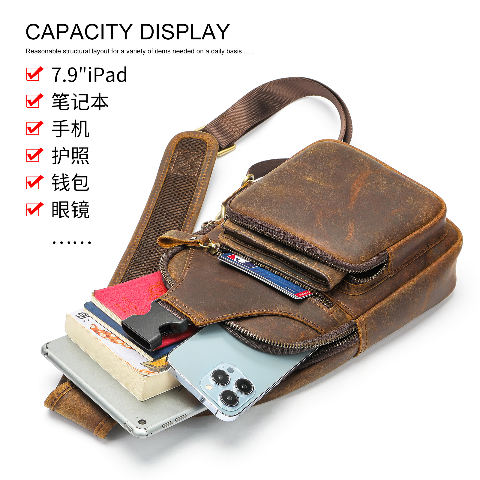 | nameOriginal | Genuine leather chest Bag Men's bag men's shoulder bag crossbody bag European and American retro Crazy Horse Leather Crossbody men's bag foreign trade Wholesale |
