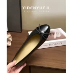 Genuine leather flat bottom color matching shallow mouth small fragrance style shoes for women 2024 new scoop shoes for women bow ballet shoes for women