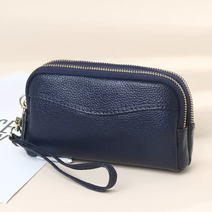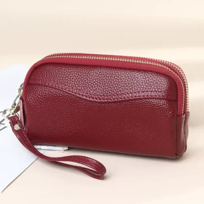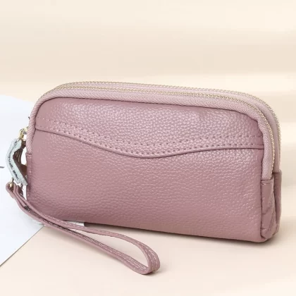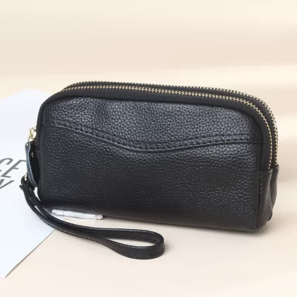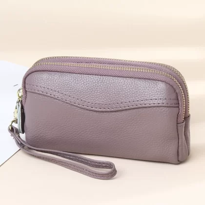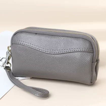 Genuine leather handbag, women's coin purse, long double-layer mobile phone bag, mother's grocery shopping bag, cowhide soft leather clutch bag, small bag
