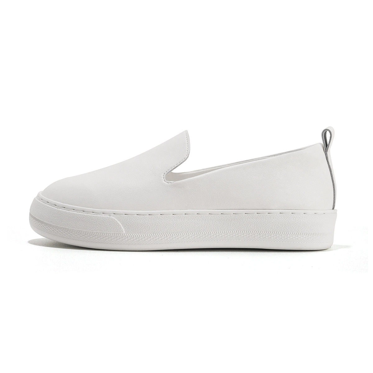 حذاء بدون كعب من الجلد الطبيعي للنساء جديد 2024 حذاء مسطح لخريف وشتاء حذاء فول كسول بأرجل واحدة حذاء أبيض بنعل ناعم