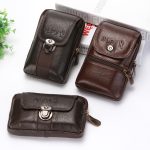 Genuine leather mobile phone waist bag high quality casual men's waist bag 6 inch lock anti-theft change cigarette mobile phone leather waist bag men