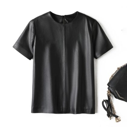| nameOriginal | Genuine Leather Spring New High-end Black Sheepskin Short-sleeved T-shirt Women's Elegant Age-reducing Short Top |