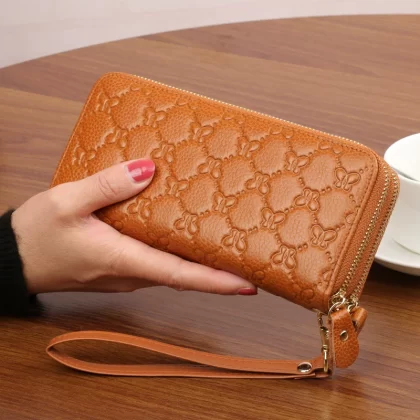 | nameOriginal | Genuine leather wallet for women, long double-layer zipper, large-capacity clutch that can hold mobile phone bag, khaki multifunctional wallet leather |