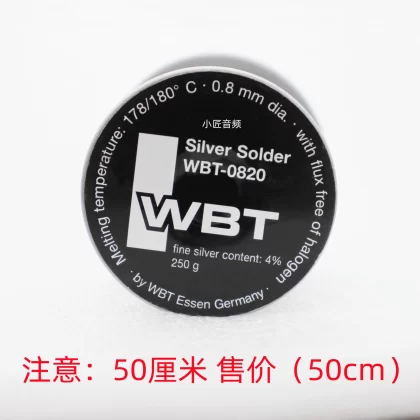| nameOriginal | German original fidelity spot WBT 0820 0.8mm silver-containing 4% tin wire hifi audio headset solder wire containing flux rosin low melting point 178℃ 180℃ soldering light tin |