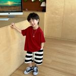 هدايا ملابس أطفال تي شيرت بأكمام قصيرة 2024 صيف كوري نمط بسيط عصري خالي من الفتحات ملابس أطفال للشارع بأكمام قصيرة منسوجة