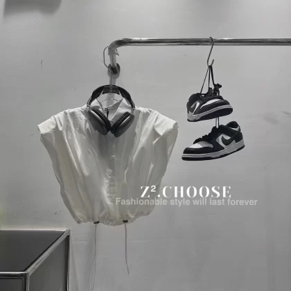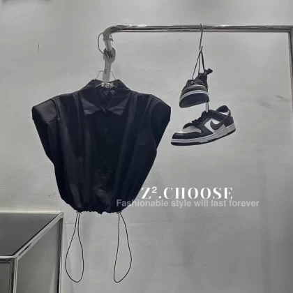 | nameOriginal | Girls 2024 new summer style Hong Kong style fashionable drawstring waist buttoned sleeveless short shirt top |