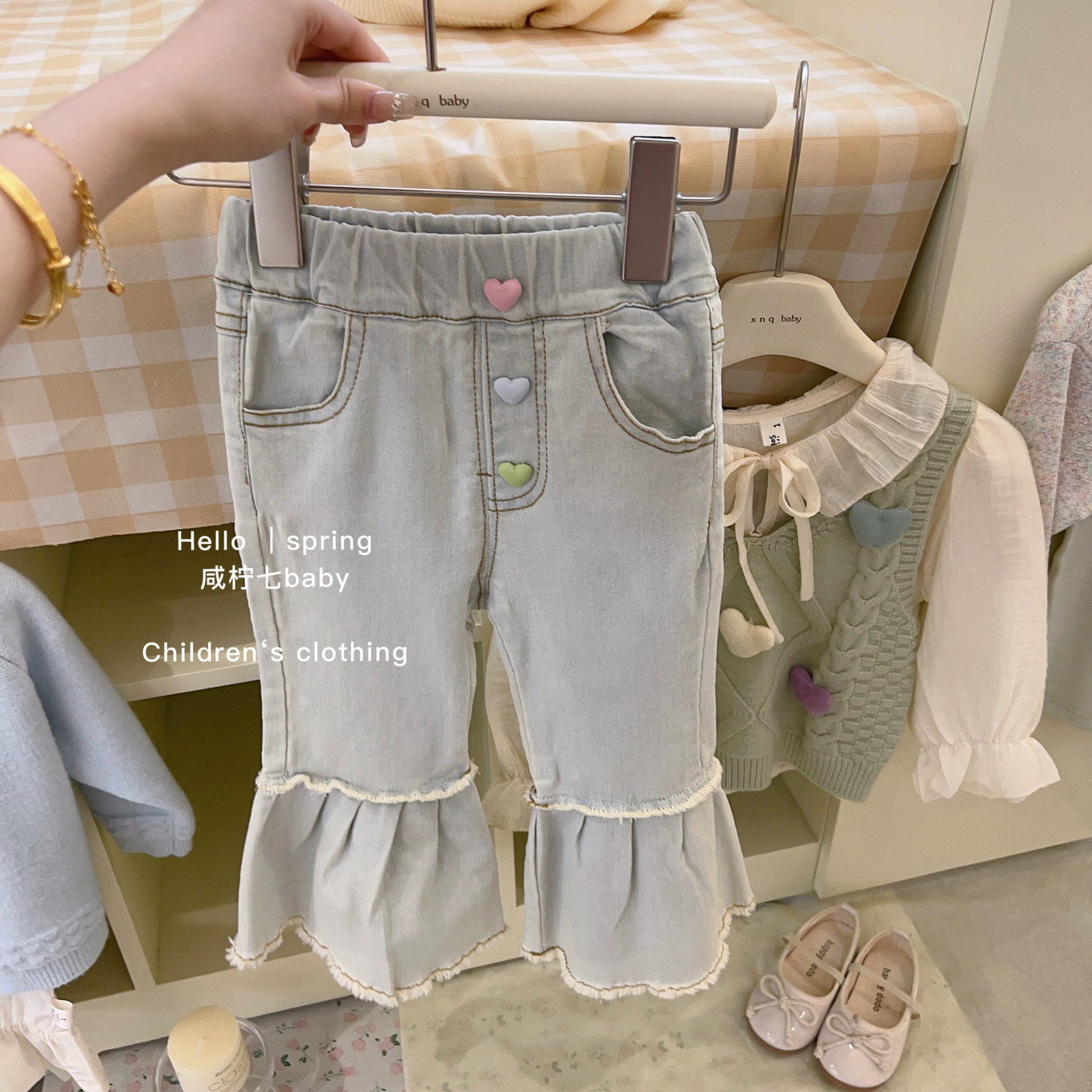 | nameOriginal | Girls 2024 Spring New Korean Style Bow Knitted Vest Vest Denim Flare Pants Western Style Suit |