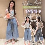| nameOriginal | Girls' 2024 Summer Middle and Large Children's New Children's Korean-style Gradient Wide-leg Denim Culottes Trendy Cool New Pants |