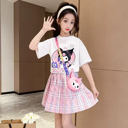 nameOriginal | Girls and children's short-sleeved suits 10-year-old girls and children's fashionable Internet celebrity summer suits and skirts for older children in summer |
