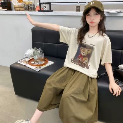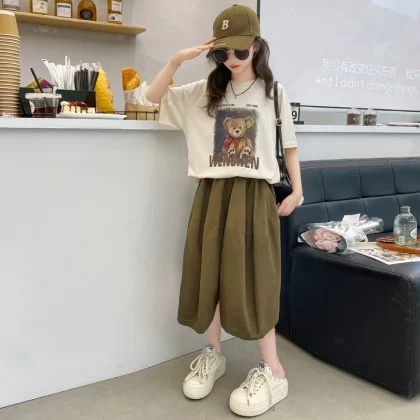 Girls and older children's pure cotton casual two-piece set for junior high school students with short sleeves