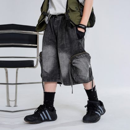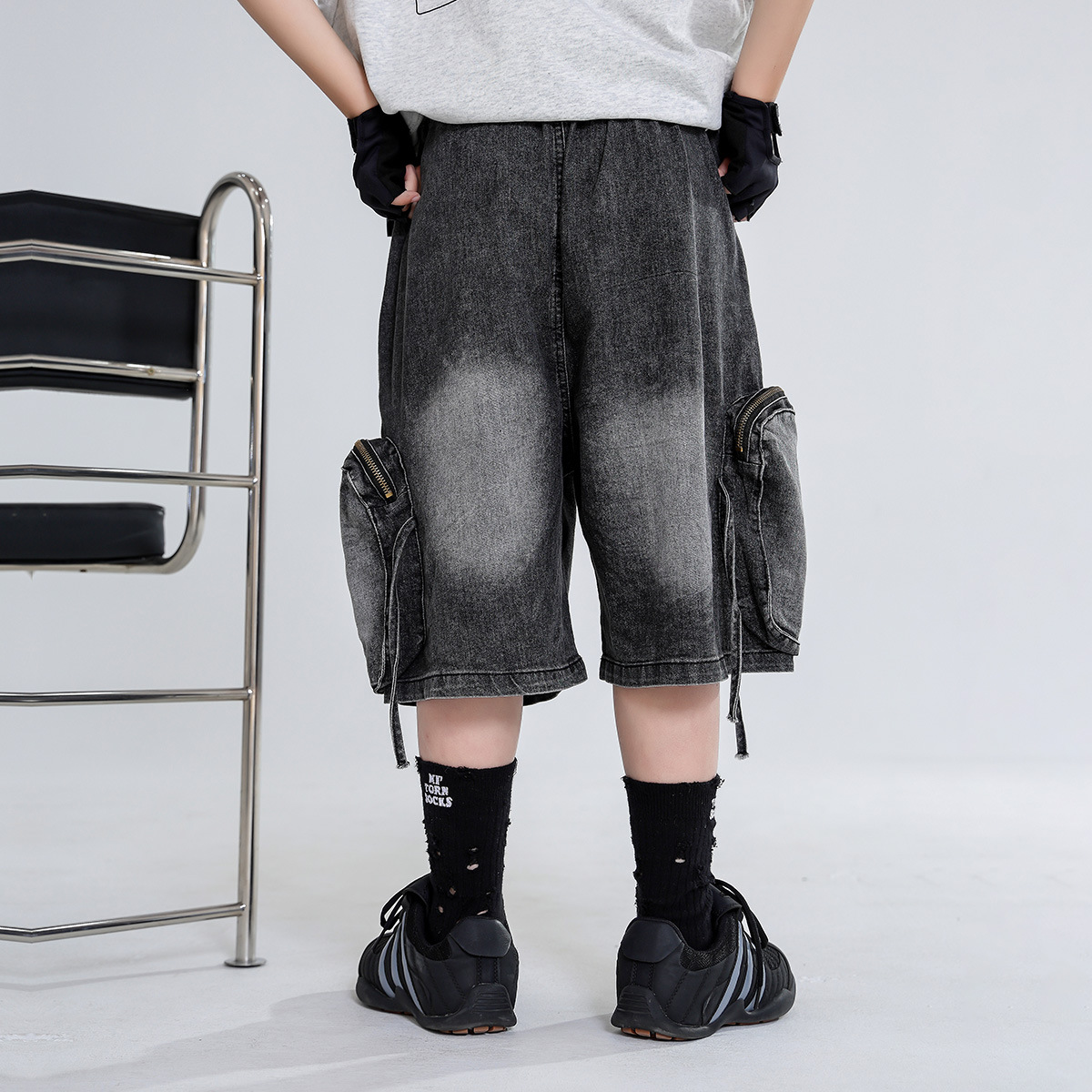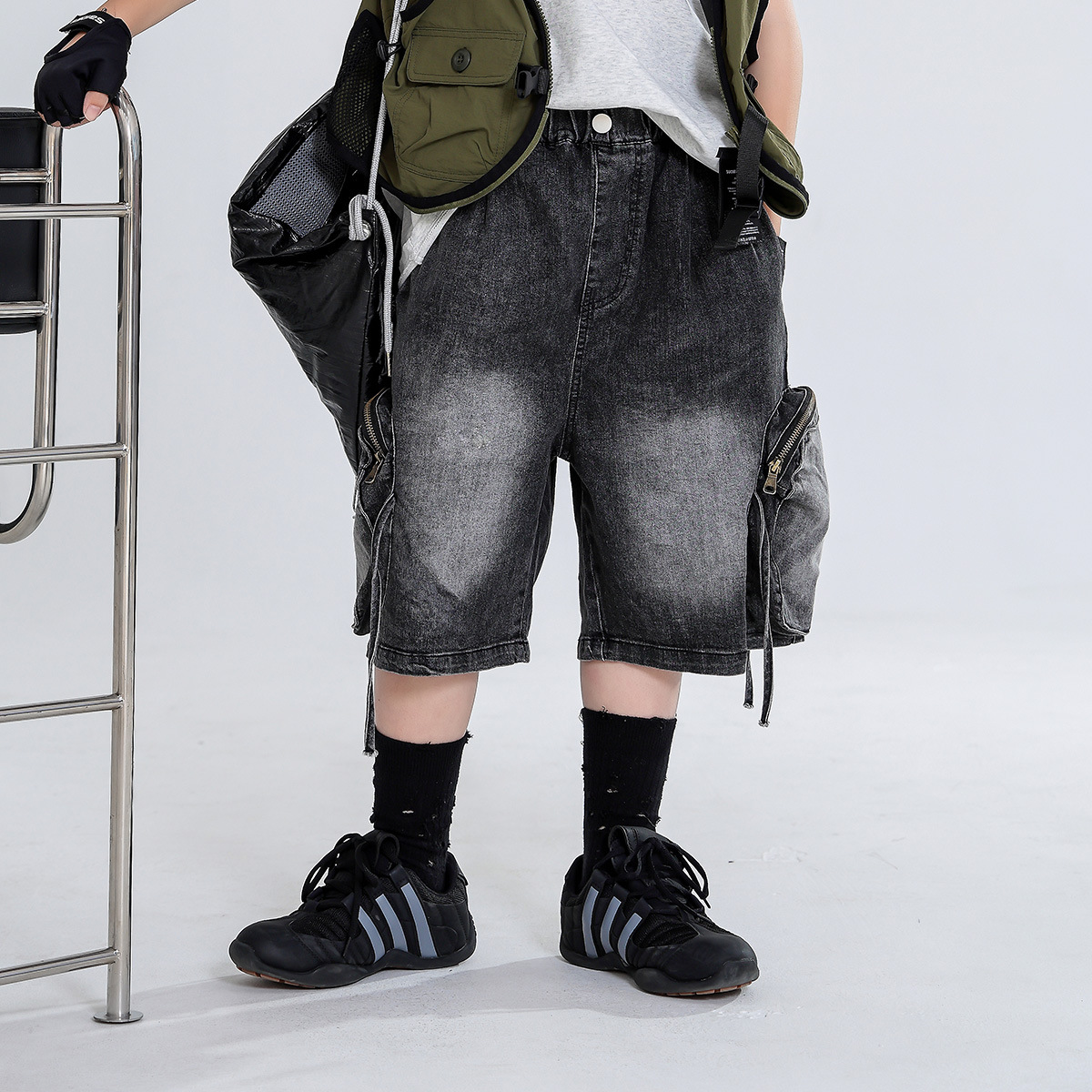 Girl's Big Boy's Big Pocket Denim Shorts 2024 Summer New Arrival Work Pants Academic Style Fashionable Casual Slimming Pants