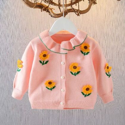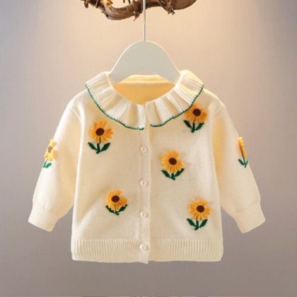 Girls' Cardigan Coat 2023 Spring and Autumn Children's Sweater New Style Western Style 1 Year Old 234 Baby Clothes Baby Top