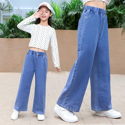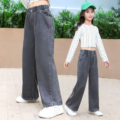 | nameOriginal | Girls' Casual New Style Loose Outer Wear Straight Girls' Wide Leg Pants Junior High School Students Middle School Big Children Girls' Wide Leg Denim Trendy |