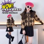 | nameOriginal | Girls' Chanel style knitted cardigan autumn and winter New Korean style medium and large children's net red thickened Diamond plaid brown sweater |