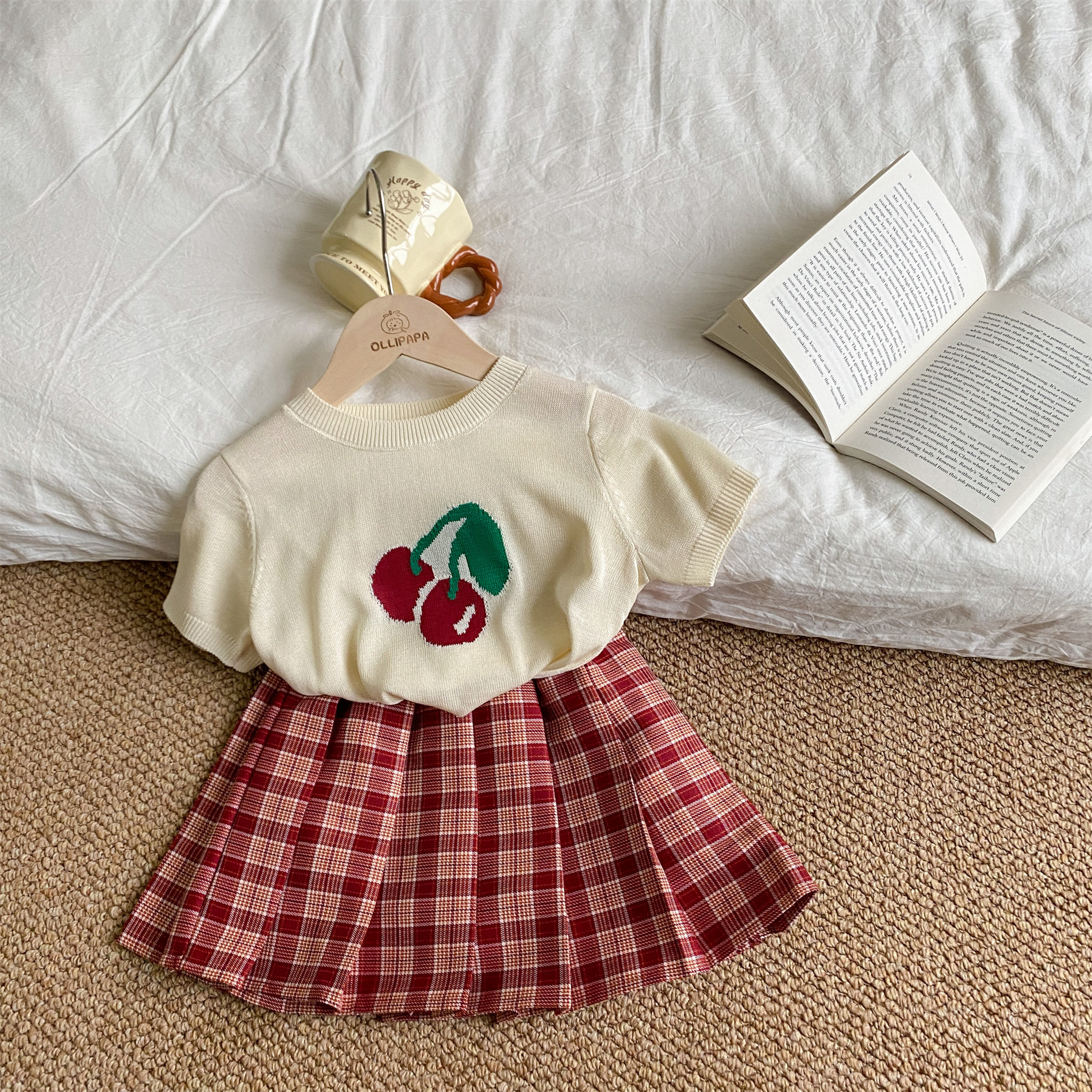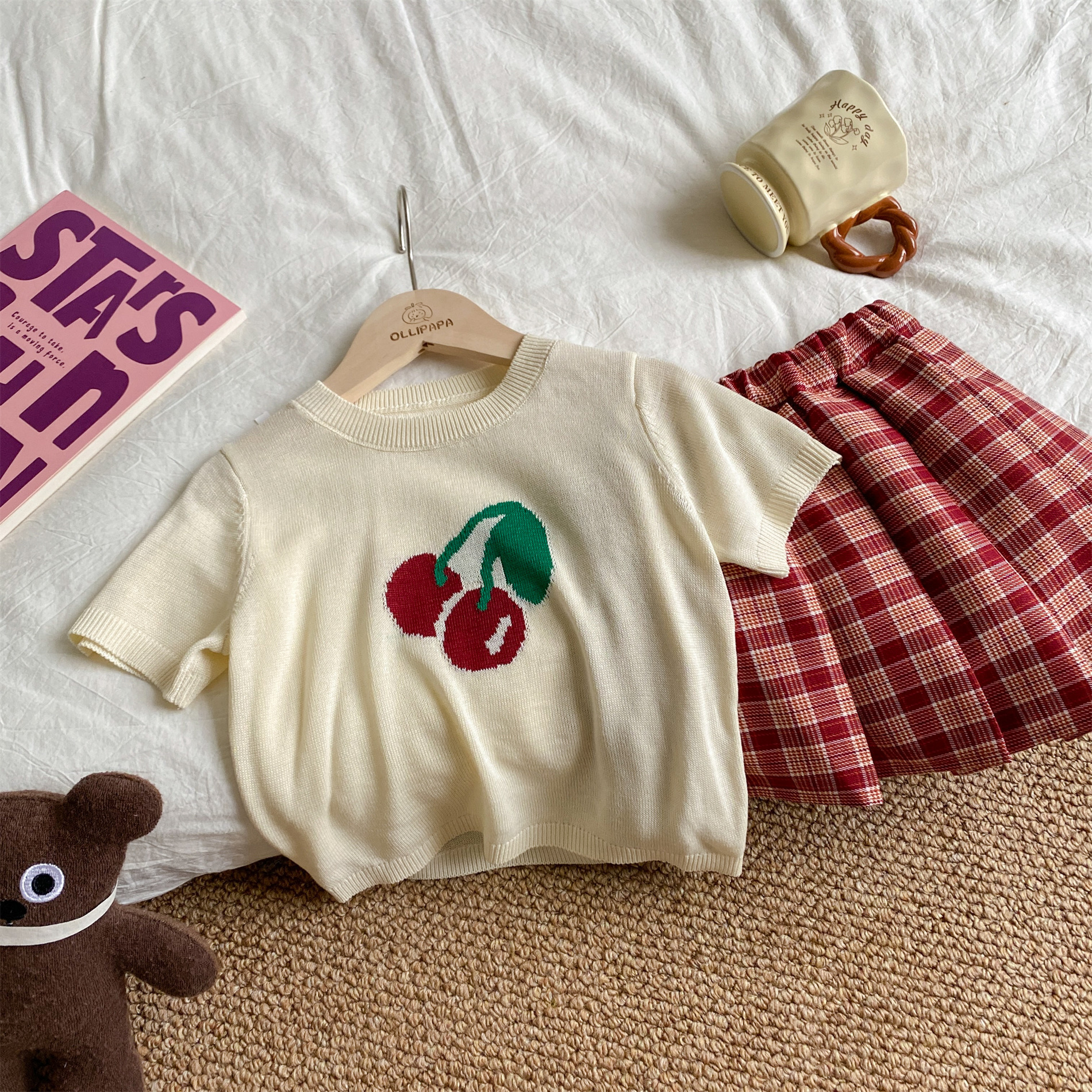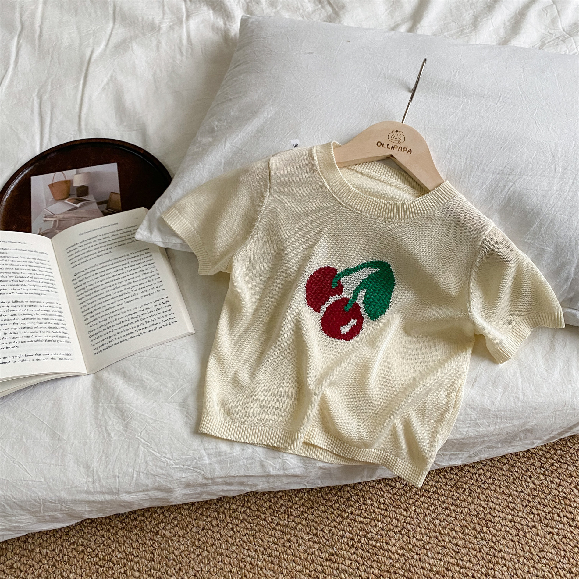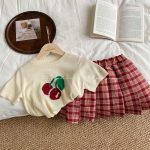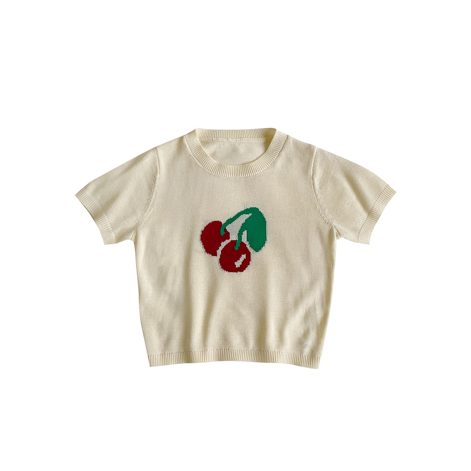 | nameOriginal | Girls' Cherry Ice Silk short-sleeved T-shirt 2024 spring and summer new style fashionable all-match knitted top for baby girls |