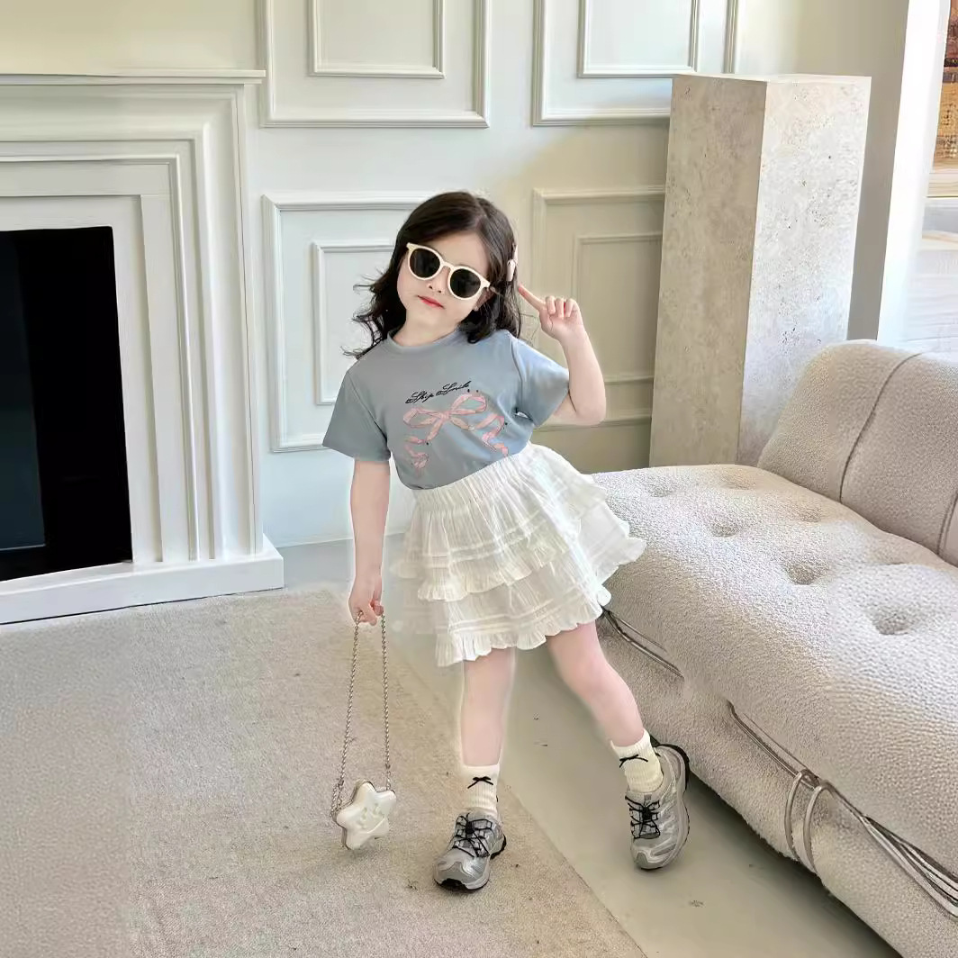 | nameOriginal | Girls' Children's Wear 2024 New Summer Set of Meat Powder Bow T Jacquard Horn Half Culottes |