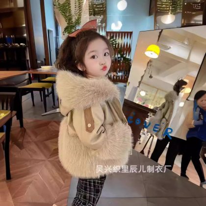 Girl's Coat New fleece-lined Thickened Fur Coat Girl's Autumn and Winter Coat Children's Coat Little Girl's Fur
