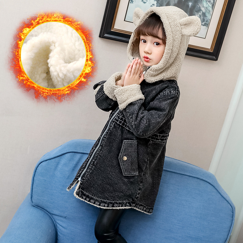 | nameOriginal | Girls' Coat Winter 2022 New Western-style Fleece Denim Coat Mid-size Children's Thick Korean-style Cotton Coat |