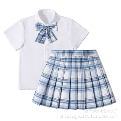 | nameOriginal | Girls' College Style Skirt Set New Style Children's Long and Short Sleeve Plaid Skirt Two-piece jk Uniform Pleated Skirt |