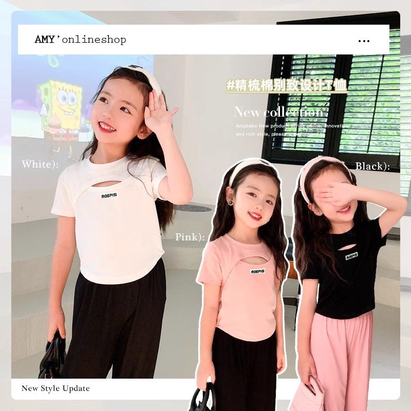 | nameOriginal | Girls' cotton letter hollow-out short fashion T-shirt 2024 Summer new medium and big children's western style slim-fit short-sleeved top |