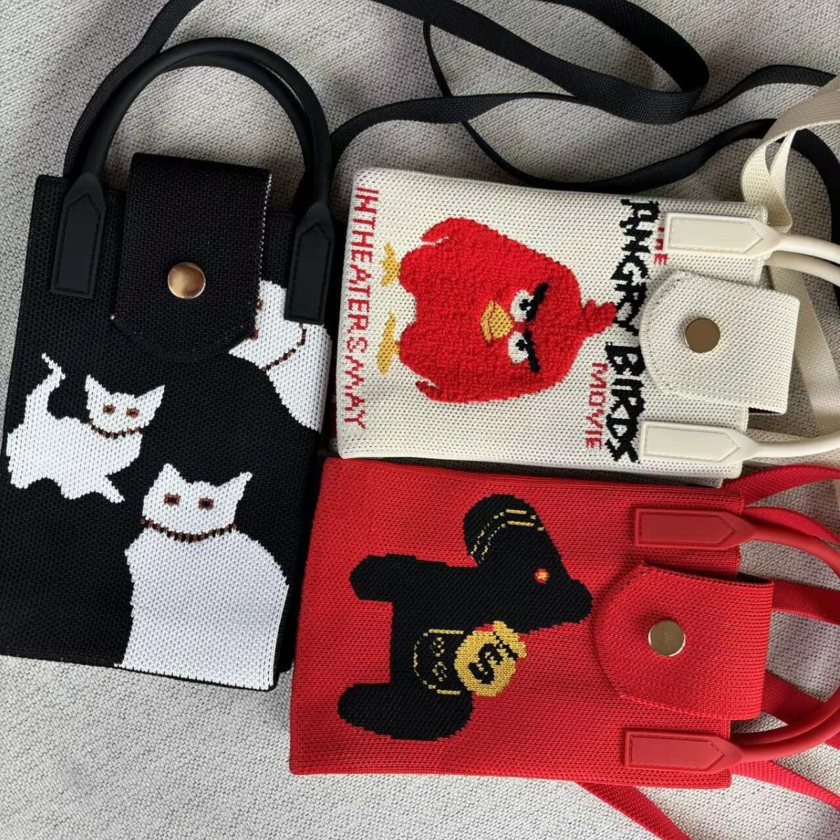 | nameOriginal | Girls Cute Niche Shoulder Flip Cover Crossbody Mobile Phone Bag Coin Bag 2024 New Bag Knitted Lightweight Handbag |