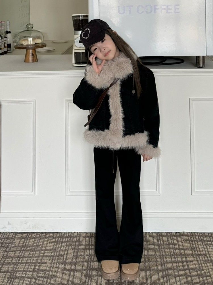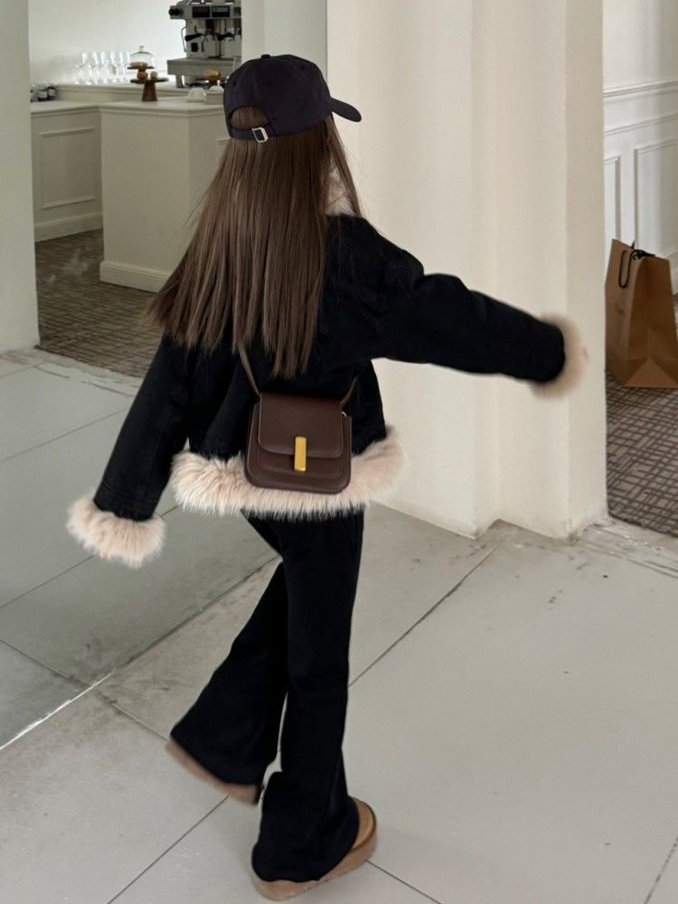 | nameOriginal | Girls' Denim coat 2023 Winter New girls' Korean style thick warm short stitching furry children's cotton-padded coat |