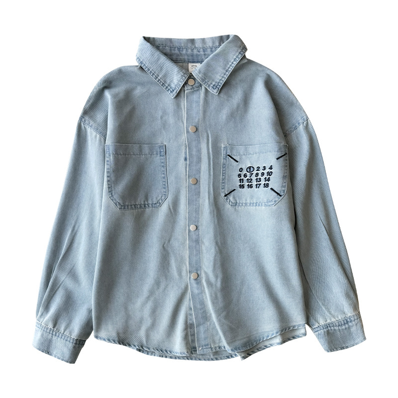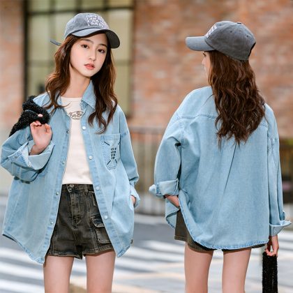 Girls' Denim Shirt Spring and Autumn 2024 New Style Top Long Sleeve Lapel Shirt Korean Style Spring Clothes