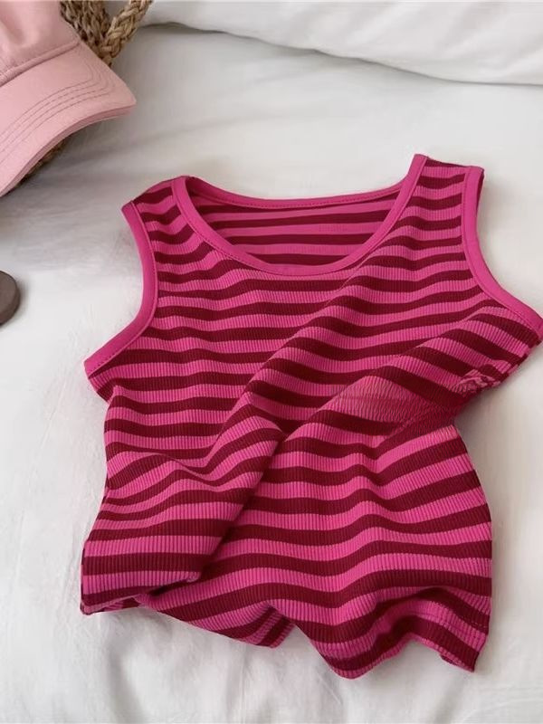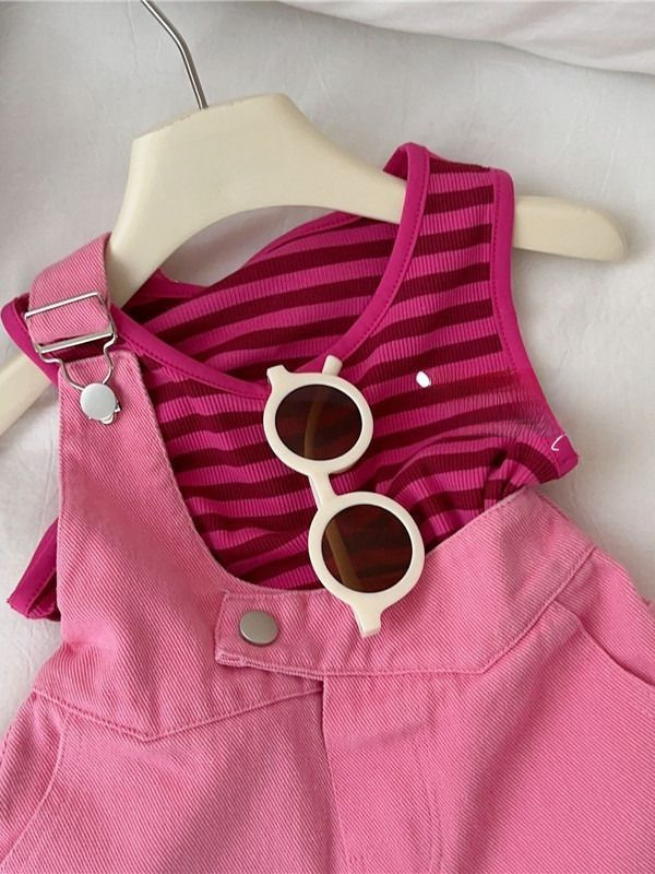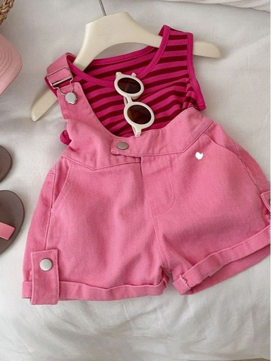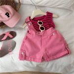 | nameOriginal | Girls' Denim suspender pants suit 2023 new children's baby Summer striped vest suspender shorts two-piece set |