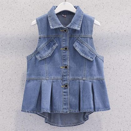 | nameOriginal | Girls' Denim Vest Spring and Autumn Western Style Skirt Vest Shoulder Waistcoat Children's Middle and Big Children's 2024 New Vest Top |